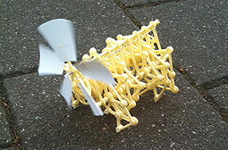 Een plaatselijke bioloog weet te vertellen dat het dier Animaris Ordis Parvus heet en als bouwpakket te bestellen op de site van Theo Jansen: www.strandbeest.com. Kijk bij z’n webshop.