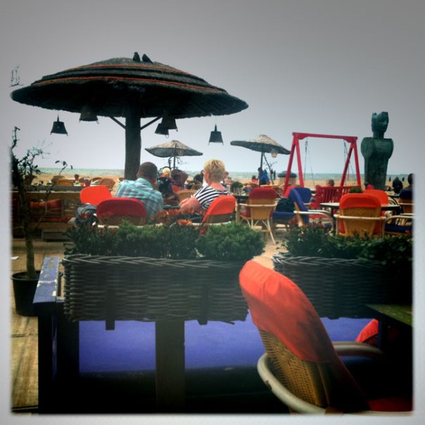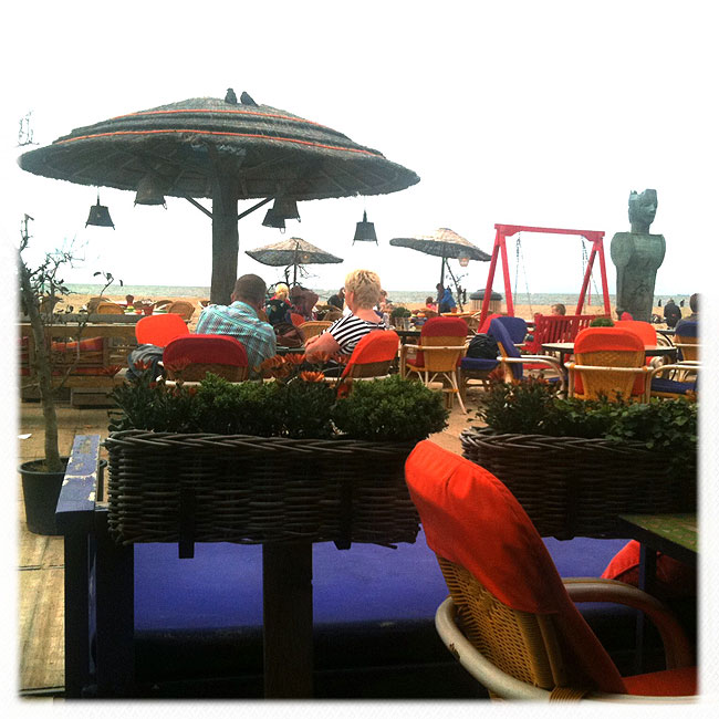 Later, bij Bora Bora op het terras (lekkere appeltaart, goeie thee) hadden we uitzicht op twee paartjes. Heerlijk rustig met uitzicht op zee.