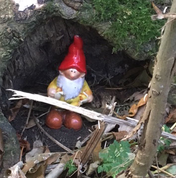 Al snel bleek dat het hele pad bewoond is door kabouters, elfen en andere boswezentjes. Heel leuk en met fantasie en smaak aangelegd. Een paar voorbeelden hieronder. Er zijn er nog veel meer; we hebben vast niet alles gezien. Leuk om met kinderen af te speuren, maar ook veel volwassen met een jong hart kunnen er genieten.