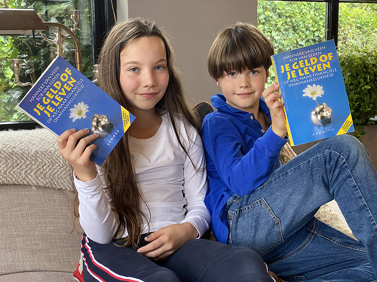 Vandaag kreeg ik twee tweedehands exemplaren van Je geld of je leven binnen voor onze kinderen. Die boeken gaan in hun ‘kist voor later’: een hutkoffer (voor ieder één) vol met persoonlijke spullen en daarbij een aantal onmisbare boeken in het leven.”
